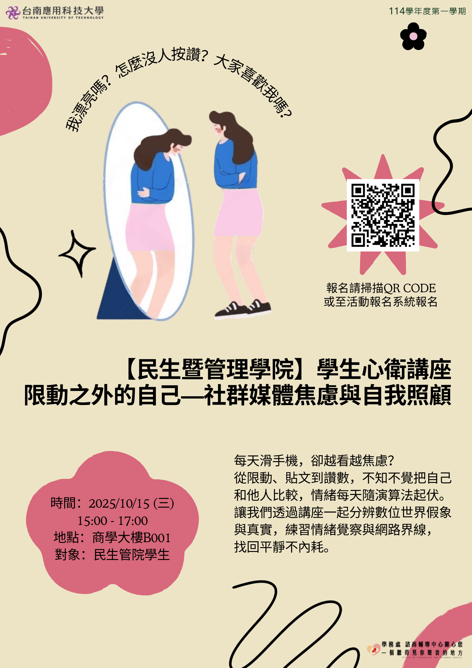 主題: 限動之外的自己—社群媒體焦慮與自我照顧